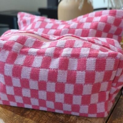 Checkered Cosmetic Bag 2-Piece Set in Pink Only $9.30 on Amazon | Perfect for Travel