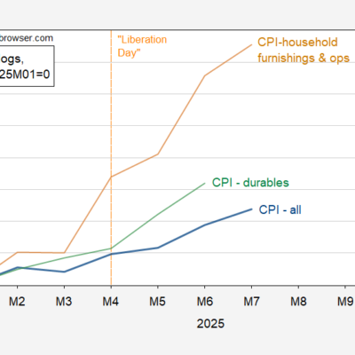 [ad_1] From the CPI release today: Figure 1: CPI all urban (bold blue), CPI – household furnishings and operations (tan), CPI –