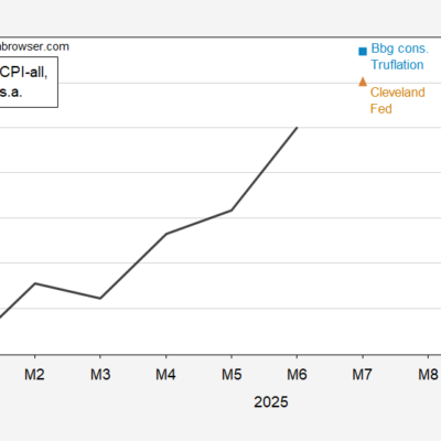 [ad_1] Bloomberg, Truflation at 2.8% y/y; Cleveland Fed at 2.72%. Figure 1: CPI-all (bold black), Cleveland Fed nowcast (red triangle), Bloomberg consensus,