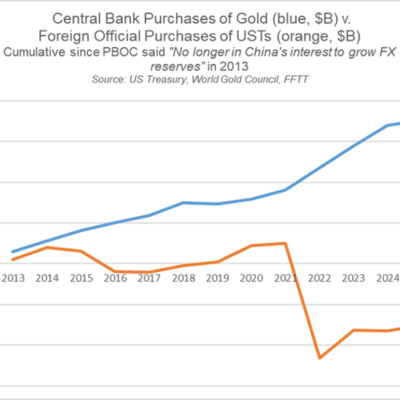 [ad_1] For my sins, I get emails from AAPS: central banks globally are buying gold, but since 2021, foreign official purchases of the U.S. Treasury