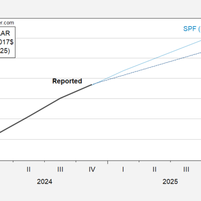 [ad_1] The March FT-Booth survey is out; median q4/q4 growth for 2025 is 1.6%, down from 2.3% in the December survey (see this post for comparison