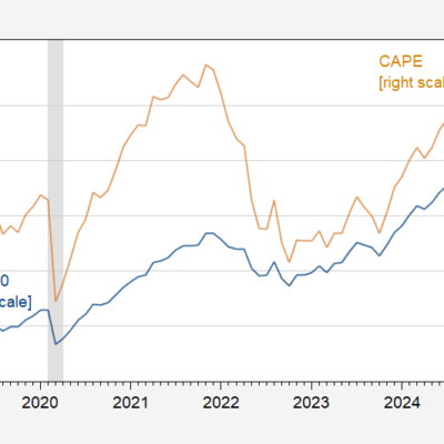[ad_1] As attributed to Paul Samuelson. So, with trepidation, I show the SP500 and CAPE over the last half decade: Figure 1: SP500 (blue, left
