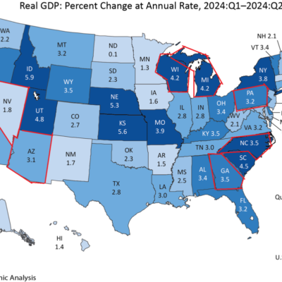 [ad_1] The country is in the black, overall, according to Friday’s release. Battleground states outlined in red. Source: BEA (27 September 2024), as edited by