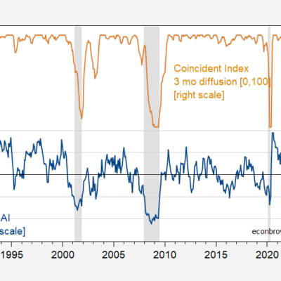 [ad_1] CFNAI and state-level coincident indices suggest softening in activity. Figure 1: CFNAI diffusion index (blue, left scale), and coincident index diffusion index for 3