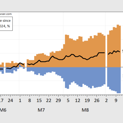 [ad_1] With August CPI release, we have core, chained core, and supercore. PPI comes tomorrow. Figure 1: Instantaneous inflation for core CPI (blue), chained core CPI