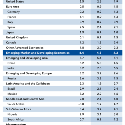 [ad_1] Using the April 2024 WEO projections (the July update indicates no revision for 2024 growth, and -0.3 ppts for 2025 y/y), we can see