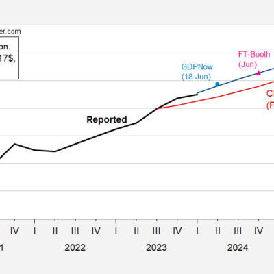 [ad_1] The CBO released an updated Economic Outlook yesterday. Projected PCE inflation is higher, as are budget deficits. For me, most interesting are the GDP