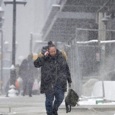 Snow falls at Philadelphia airport amidst a heat wave