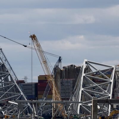 Baltimore salvage crews are removing containers from Dali cargo ship that collapsed the Francis Scott Key Bridge as harbor moves toward reopening