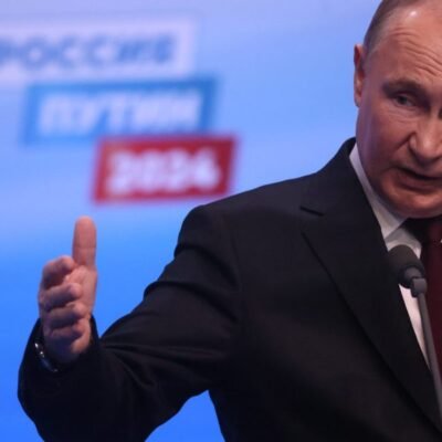 [ad_1] A defiant Vladimir Putin said Russia won’t be stopped from pursuing its goals after he swept to a record victory in a presidential election