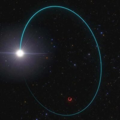 [ad_1] This artist’s impression shows the orbits of both a massive stellar black hole and its companion star ESO/L. Calçada Astronomers have found the largest