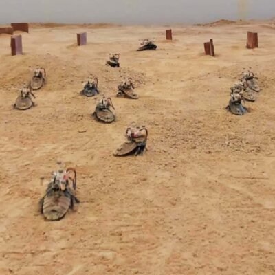 [ad_1] The cyborg cockroaches being tested on desert-like terrain Yang Bai, et al. (2024) A swarm of remote-controlled cyborg cockroaches can navigate to a target