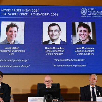 [ad_1] The Nobel prize committee announce the chemistry prize winners at the Royal Swedish Academy of Sciences in Stockholm JONATHAN NACKSTRAND/AFP via Getty Images The
